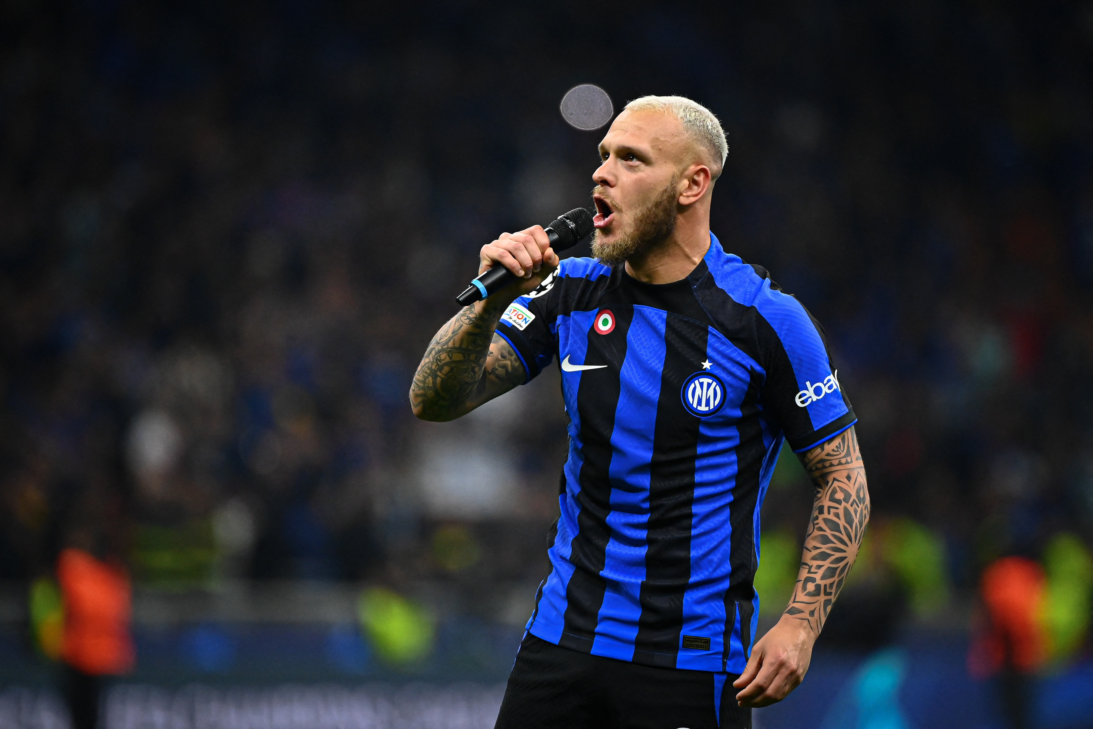据意大利记者比亚辛透露,迪马尔科因右大腿擦伤被替换下场,而他在上半场为国米首开记录。