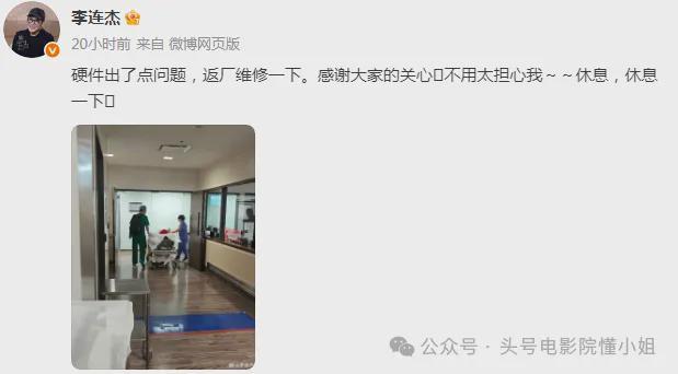 8月17日,李连杰在社交账号上发布自己躺在病床上的照片,配文称“最近又经历了一次无常的试炼。”之后,李连杰幽默回应称是“硬件出了点问题,返厂维修一下。”