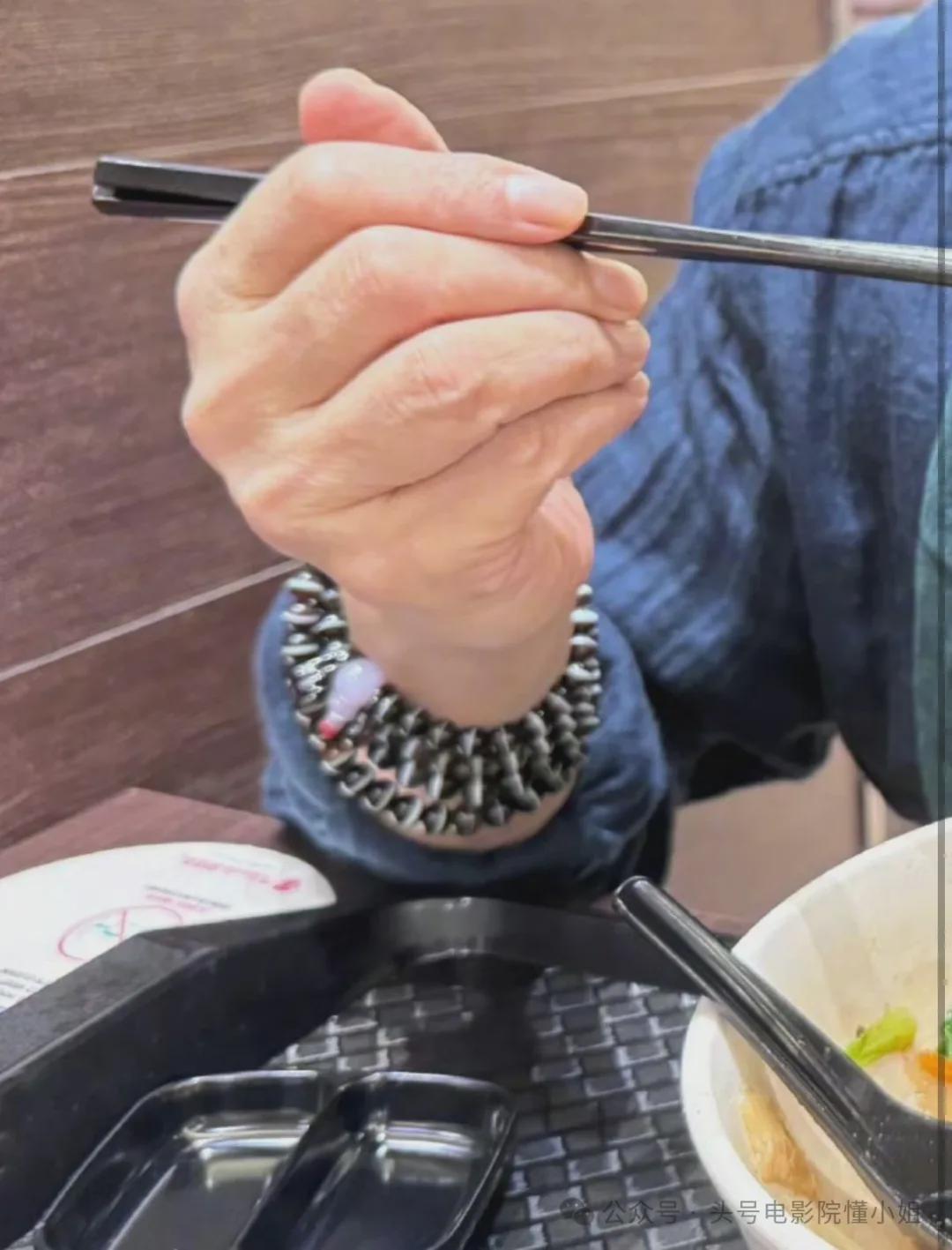 出院吃面的照片上,李连杰也戴着它,爱不释手。